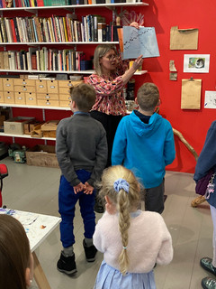Młodsi uczniowie mieli okazję odwiedzić muzeum sztuki współczesnej i obejrzeć w towarzystwie Agnieszki Stróżyk, wspaniałą wystawę Sary Lundberg, szwedzkiej ilustratorki i pisarki. W czasie językowo-artystycznego spotkania w muzeum zaglądaliśmy do polskiej wersji książki „Spacer z kotem” (Kattpromenaden), którą to książkę przetłumaczyła właśnie Agnieszka Stróżyk. Przy tej okazji porównywaliśmy oryginały ilustracji z wystawy z wersją książkową i rozmawialiśmy o tym, czy koty po szwedzku i po polsku miauczą tak samo i czy tak samo chodzą własnymi ścieżkami...